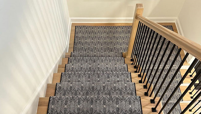 Our custom stair runners not only enhance the aesthetic appeal of your staircase but also offer added comfort and noise reduction, providing a welcoming and peaceful atmosphere for you and your family to enjoy. Crafted with high-quality materials, our custom stair runners are designed to withstand daily wear and tear, ensuring durability and longevity for years to come.